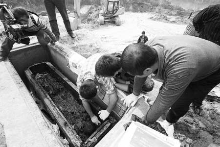 昨日上午,經(jīng)過幾小時(shí)挖掘,該墓葬被打開!皼]想到這個(gè)古墓保存這么完好!贝蜷_棺蓋的瞬間,廈門文物保護(hù)中心主任靳維柏驚喜地說。