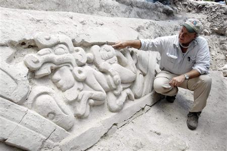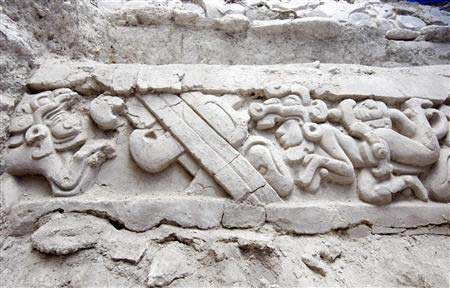 新發(fā)現(xiàn)的這些石板有26英尺長,疊加在一起,制作年代在公元前300年,石板上顯示的是瑪雅核心神話經(jīng)典《波波爾·烏》中描寫的情景。埃爾·米拉多爾遺址研究負責人理查德·漢森11日說,研究人員挖掘這個世界上最大的古瑪雅城市時,用了3個月時間才發(fā)現(xiàn)這些雕刻。