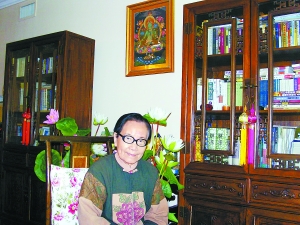 在整個采訪過程中,葉曼先生娓娓而談,時而親歷故事感人,時而詩詞典故連綴古今。當(dāng)記者問到葉曼先生的養(yǎng)生秘訣時,她說,一是吃素,二是能常常為人著想,站在對方的角度想問題,原諒人就很少生氣;三是多一點好奇心,好比孩子。老想當(dāng)年勇那是老年的毛病。
