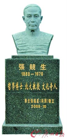 張競(jìng)生故居的建筑已翻新,周圍平整一新不復(fù)當(dāng)年的景象。一間居室門口的水井旁,新立了一座故居主人的雕像,底座上刻著寥寥數(shù)語“哲學(xué)博士 北大教授 文化奇人”。