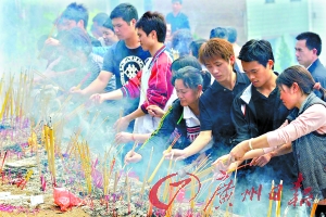 昨日,南海區(qū)大瀝鎮(zhèn)顏峰村內出現了一片人潮洶涌的景象,上百輛貼著“葉府”紅紙的大巴和不計其數的私家車停滿村里村外,3萬多名來自全省各地的葉氏后人紛紛云集在此,祭拜廣東葉氏先祖——南宋丞相葉正簡。據悉,800多年來葉氏子孫從未中斷過祭祀葉丞相。