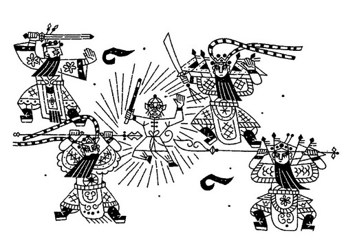 這些,只要看看他的《美猴王》插圖系列,就十分清楚。該系列作于上世紀50年代末60年代初期,當時,在縝密的研究準備之后,斯科納創(chuàng)作了80幅水墨章首尾插圖和24幅全頁彩色插圖,簡樸的水墨畫順合故事的發(fā)展,而彩色插圖則對文本進行了繪畫藝術(shù)的改編。斯科納為此研究出專門的很復雜的技巧,采用多種創(chuàng)作方法和顏料,以表現(xiàn)出故事的景象和意義。為了達到最好的藝術(shù)效果,他經(jīng)常把空間劃分為幾個部分,由此反映幻想內(nèi)容與精密藝術(shù)描寫的對比。除此之外,斯科納的其他繪畫元素,如中國的佛像、飛天、天兵天將、孔子、孟子、楚霸王、司馬遷等等,也循此嘗試慢慢展開。幸運的是,本畫展集中展示了茲德涅克·斯科納教授在中國創(chuàng)作的這批藝術(shù)珍品。