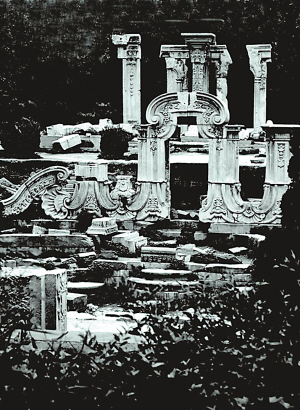皇家宮殿被搶劫破壞的悲慘場(chǎng)面令埃里松感到難受。他從宮殿走到庭院,觀賞這座園林,覺(jué)得舒服些。不過(guò)他又看見(jiàn)到處都是跑動(dòng)著的搶劫人群,他們“朝宮殿、寶塔、文源閣跑去”。