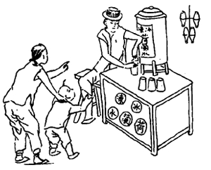 汽水!斑@可是一個(gè)新鮮的玩意兒,喝到肚子里打嗝,熱氣從口腔和鼻孔噴出來,身體就會涼快下來,所以,汽水很受歡迎。”