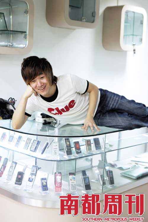 今年3月葉生開了網(wǎng)店,看到淘寶上不少賣家通過發(fā)帖紅起來,葉生也用手機(jī)拍攝了真人秀,從上往下的角度,瘦削的臉頰,金色的長發(fā),朋友看到后笑著大聲叫他帥哥,像極了“至上勵合”的明星劉洲成,于是,葉生就以“花樣美男”為題發(fā)表在論壇上,“發(fā)帖銷售效果一般般,但不少網(wǎng)友留言說我很帥。平時用照片耍?嵋矔脚,然后約她們出去玩。”盡管沒有在淘寶上紅起來,網(wǎng)店生意也馬馬虎虎,但能溝到女仔,葉生頗為得意。