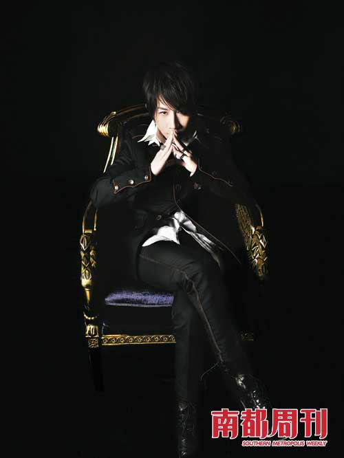 今年央視春晚上的8分鐘近景魔術(shù)表演,讓劉謙從一名普通魔術(shù)師一夜走紅,F(xiàn)在,他一身黑衣裝扮酷酷地坐在沙發(fā)上,就像一位帝王坐上了龍椅,事實上,那張沙發(fā)也有意設(shè)計得酷似“龍椅”造型。