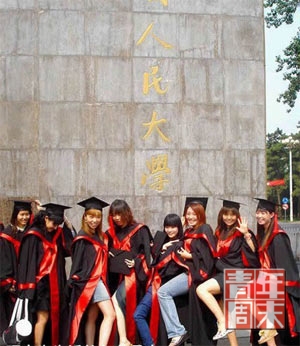 這樣的另類畢業(yè)照,記者在搜集資料中也發(fā)現(xiàn)很多?磥恚绕鹨槐菊(jīng)拍攝學士服照的“70后”,現(xiàn)在的“80后”正越來越追求個性化。