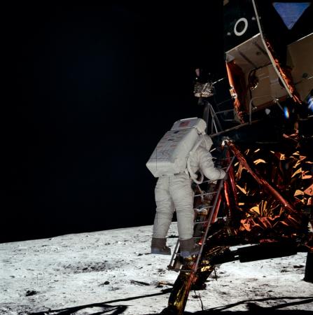 1969年7月16日“阿波羅”11號點火升空,歷時5天,于北京時間7月21日4時17分著陸艙在月球靜海地區(qū)著陸,尼爾?阿姆斯特朗和艾?奧爾德林兩位宇航員相繼踏上月球表面,開創(chuàng)了人類首次登上地球以外的另一個天體的新紀元,實現(xiàn)了人類歷史上的偉大創(chuàng)舉。阿姆斯特朗登上月球時的那句話——“這是我個人邁出的一小步,卻是人類的一大步”,成為傳頌至今的名言!鞍⒉_”計劃一共實現(xiàn)了6次載人登月,12名美國宇航員登上了月球,開展了系統(tǒng)的月球科學考察、科學實驗,安裝了探測設施,采集月球土壤和巖石樣品381.7千克。