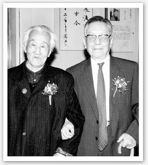 周倫玲給記者發(fā)來了兩位老人的一張獨家合影,是2002年時,兩人在中國美術(shù)館“中國學者書法展”上留下的。
