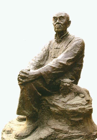 我已經(jīng)記不清是哪一年與季老有交往的了,反正幾十年了,在我的腦子里都是一連串的往事:有一年我?guī)е袼芗壹o(jì)峰到未名湖畔季老家里,告訴他這是青年雕塑家紀(jì)峰,來(lái)給你做一個(gè)像。季老只是微微點(diǎn)頭,仍舊與我說(shuō)話。在旁邊的李玉潔老師卻心里犯嘀咕,這么年輕的人,能行嗎?這是她的心里話,沒(méi)有說(shuō)出來(lái)。我與季老隨便說(shuō)著,大約有半小時(shí)過(guò)去了,卻見(jiàn)到紀(jì)峰手里一個(gè)活生生的季老的頭像,季老說(shuō)還沒(méi)有看到他塑呢,怎么就出來(lái)了,真像啊!這時(shí)李老師就說(shuō)出了上面這段心里話。然后說(shuō)想不到真能,像極了,比以前別人塑的都好。之后,季老一連要紀(jì)峰為他做了三個(gè)像,一個(gè)是與真人一樣大的坐在門外未名湖邊的像,一個(gè)是比真人還要大一點(diǎn)的站像,我為這個(gè)站像題了一首詩(shī),刻在像后,詩(shī)云: