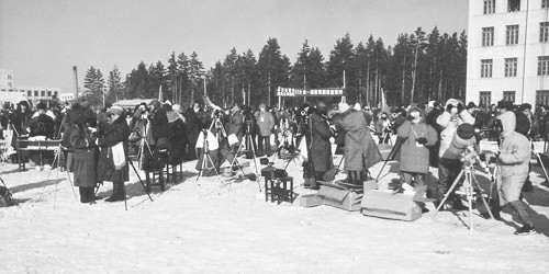 1936年6月19日,在中蘇邊境以及日本北部發(fā)生日全食,最長食延也是2分多鐘。中國天文學(xué)會組派兩支隊伍出國觀測。一支赴日本北海道,由中央研究院天文研究所所長余青松領(lǐng)隊,成功拍攝到了日冕照片和關(guān)鍵時段的日食影片。另一支赴蘇聯(lián)伯力,張鈺哲和李珩兩人前往,雖說陰天致使計劃失敗,但也積累了一些經(jīng)驗。