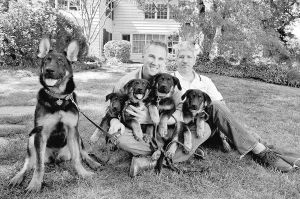如今,賽明頓擁有了5只和“追捕”有著相同基因的小德國牧羊犬。它們的站姿、坐姿,尤其是坐下的時候“把大腿藏在屁股下面”的樣子和“追捕”一模一樣。