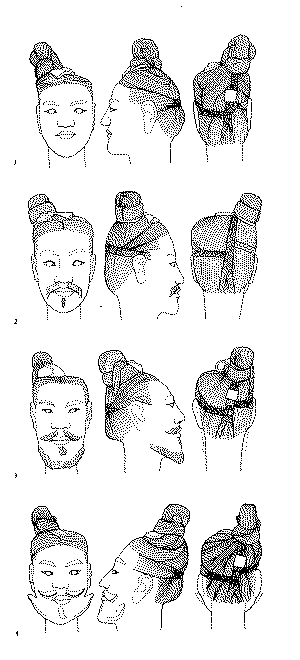 對陳景元指出的懸疑,有關(guān)專家表示,秦俑發(fā)髻偏右,與秦人尚右、右為上的觀念有關(guān)。文獻(xiàn)記載,當(dāng)時富貴人家就住在“右閭”,窮人則住在“左閭”,右丞相也比左丞相地位高。同時,發(fā)髻偏右也是人的自然習(xí)慣,多數(shù)人習(xí)慣右手梳理頭發(fā)。因此兵馬俑多數(shù)發(fā)髻偏右,也有個別左髻。但這都與楚人及其他少數(shù)民族沒有直接關(guān)系。那時我國的一些少數(shù)民族有“文身斷發(fā)”者,有“披發(fā)”者,與秦國人的發(fā)式有著較大區(qū)別。