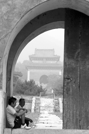相比定陵的任你看個夠,永陵卻是神秘又神秘。在得到李德仲的允許后,司機(jī)驅(qū)車帶記者來到永陵。斑駁的路面,全是大城磚鋪砌,朱紅色的墻顏色已經(jīng)陳舊,木頭大門已見破損。攝影記者剛要踏進(jìn)大門,一位師傅就板著臉喝止。他倚坐在門檻上,一臉威嚴(yán):“不能進(jìn),里面有探頭!”記者便乘機(jī)和他聊了起來,他姓齊,是新一代的守陵人。從上世紀(jì)80年代開始,他就擔(dān)任守護(hù)永陵一職,每天的生活非常簡單,睜開眼睛就是守在永陵的門口,偶爾聽聽收音機(jī)。齊師傅通常都是坐在永陵入口的青石門檻上,手里一個對講機(jī)。偶爾對講機(jī)會響起聲音,那是十三陵管理委員會通知他,有專家要來參觀了,做好接待準(zhǔn)備……不過,相比定陵和長陵,來這里參觀的人實在少之又少;大多數(shù)時間,老齊都是兩眼看著紅色斑駁的大門,還有門檻、破碎不一的城磚鋪砌的路面。