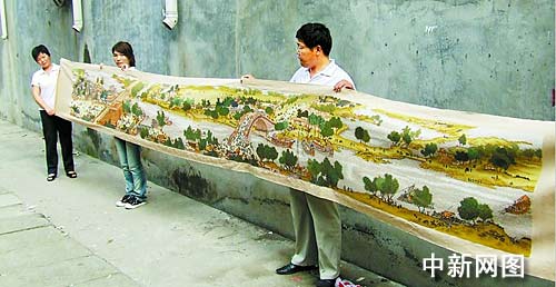 中新網(wǎng)新鄉(xiāng)8月17日電 (記者 侯偉勝) 河南省獲嘉縣的退休女工張新珍耗費一年半的時間,用78種顏色、大約120萬根彩線,繡了一幅與原圖大小一樣的《清明上河圖》。目前,這張?zhí)厥獾摹肚迕魃虾訄D》已經(jīng)完工。