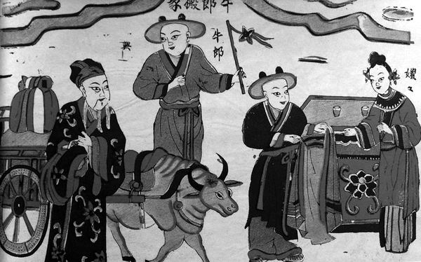 詩(shī)中的牛郎、織女分隔于天河兩岸,男的放牛,女的紡織,終日辛勤勞作,但因煩擾于彼此的無(wú)盡相思而收效不大,詩(shī)中可以使人隱約感覺(jué)到二人相望而不能相聚的幽怨之情。《詩(shī)經(jīng)》中這種隱隱約約的表達(dá)方式,就構(gòu)成了后世這一傳說(shuō)的基礎(chǔ)。至《史記·天官書》中,便有了“織女,天女孫也”的說(shuō)法。于是,在漢代的詩(shī)文中,就增加了故事的許多內(nèi)容,對(duì)女主人公因被迫分離而造成的痛苦的描寫更具體化了。如《古詩(shī)十九首》中的《迢迢牽牛星》詩(shī):