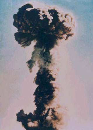 1964年10月16日下午3時(shí)。新疆羅布泊上空,我國第一次將原子核裂變的巨大火球和蘑菇云升上了戈壁荒漠。第一顆原子彈爆炸獲得完全的成功。中國成為世界上第5個(gè)擁有核武器的國家,極大地提高了中國的國際地位和影響。