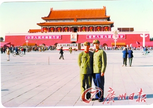 “我們哥倆兒幾乎是同步通過(guò)了天安門,這在全國(guó)參加國(guó)慶閱兵的官兵中都是罕見的!52歲的李鳴捷如今是中國(guó)銀行成都高新技術(shù)產(chǎn)業(yè)開發(fā)區(qū)支行行長(zhǎng)。1984年10月1日上午10時(shí)許,展示中國(guó)改革開放和現(xiàn)代化建設(shè)巨大成就的國(guó)慶35周年大閱兵盛典上,李鳴捷在排序第一的軍事學(xué)院方隊(duì),鏗鏘正步走過(guò)金水橋旁。此時(shí),弟弟李明偉和戰(zhàn)友駕駛的機(jī)群,也呼嘯長(zhǎng)空,在天安門上空中舞出四色彩煙,共慶盛典。退伍多年,兩兄弟很少主動(dòng)提及這段經(jīng)歷,但當(dāng)年受閱的那身軍裝卻一直珍藏。