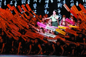此次《復(fù)興之路》的演出共有3200名藝術(shù)家加盟。昨日記者從劇組了解到,劇中不僅有田華、陳鐸、雅坤等老藝術(shù)家朗誦,彭麗媛、毛阿敏、韓紅、蔡國慶等中青年藝術(shù)家也將獻(xiàn)上精彩的演唱等。昨日介紹排練情況時,張繼剛表示,許多藝術(shù)家都放棄了收入較高的片酬和演出參加《復(fù)興之路》,這其中許多群眾演員都是解放軍戰(zhàn)士,七八月排練時,他們背負(fù)著烈日酷暑在露天排練,條件十分艱苦。
