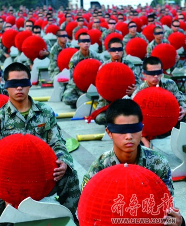 這次參加光立方演出的戰(zhàn)士中,有一部分參加過(guò)奧運(yùn)會(huì)開(kāi)幕式“擊缶而歌”和字模表演。參加過(guò)奧運(yùn)擊缶表演的戰(zhàn)士李建表示,這比奧運(yùn)缶的表演難度要大。奧運(yùn)缶整個(gè)表演時(shí)間只有3分28秒,而光立方的表演在場(chǎng)上的時(shí)間100分鐘。奧運(yùn)缶只需要把握好動(dòng)作節(jié)奏就可以了,而光立方的表演還要和視頻圖案變化融為一體。在動(dòng)作的數(shù)量上也是奧運(yùn)缶表演動(dòng)作的數(shù)倍。