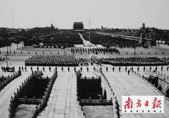這一刻,劉伯承、賀龍、陳毅、羅榮桓、聶榮臻等將帥們,都站在天安門城樓上朱德一側(cè),標(biāo)示著人民解放軍堅(jiān)決聽從中央人民政府和中央軍委的命令,為消滅一切頑敵、解放一切尚未解放的國(guó)土,奮勇前進(jìn)……