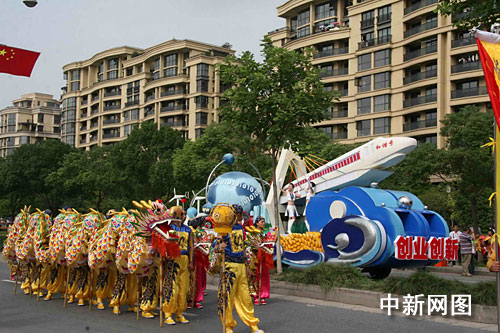 中新網(wǎng)杭州9月26日電(記者 汪恩民 袁爽 實(shí)習(xí)生 甘小虎)今天,在“浙江省慶祝新中國成立60周年文藝巡游活動”上,彩車斗艷,浙江各地市紛紛以獨(dú)具特色的民間藝術(shù)獻(xiàn)禮祖國六十年壽辰。