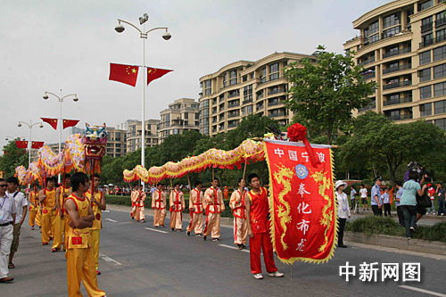 在浙江各地市的“獻(xiàn)禮”中,杭州獻(xiàn)上了具有地方特色的《余杭滾燈》、《五鳳朝陽》等節(jié)目。以“龍騰浙江”為主題,寧波獻(xiàn)上了《奉化布龍》,溫州獻(xiàn)上了《龍灣拼字龍》,湖州獻(xiàn)上了《長興百葉龍》,嘉興獻(xiàn)上了《平湖九彩龍》,臺州獻(xiàn)上了《龍鳳呈祥》。除此之外,還有金華獻(xiàn)上的《十八蝴蝶》,舟山獻(xiàn)上的《踏浪祝福》,麗水獻(xiàn)上的《青田漁燈》等節(jié)目,共同祝賀祖國六十年誕辰。(完)