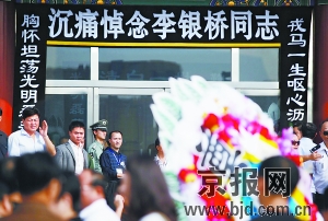 今天上午10時(shí),毛澤東衛(wèi)士長(zhǎng)李銀橋追悼會(huì)在八寶山殯儀館舉行。李銀橋生前同事、友人和眾多滿懷對(duì)老人崇敬之情的市民參加了遺體告別儀式。李敏、毛新宇等毛澤東親屬也來(lái)到追悼會(huì)現(xiàn)場(chǎng)。