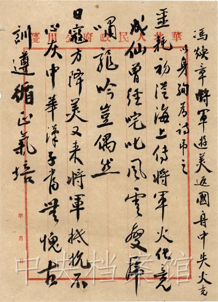 馮玉祥( 1882~ 1948)字煥章,安徽巢縣(今巢湖市)人,愛國將領(lǐng)。 1946年 9月赴美國考察, 1948年7月響應(yīng)中國共產(chǎn)黨號(hào)召,動(dòng)身回國參加新政協(xié)籌備工作, 9月 1日因回國客輪在敖德薩港附近的黑海海面失火遇難。他的遇難震驚了中外,中共中央主席毛澤東和中國人民解放軍總司令朱德向馮玉祥夫人發(fā)出唁電: “驚悉馮先生及令媛不幸遇難,至深痛悼,馮先生置身民主,功在國家。尚希勉抑哀思,并為實(shí)現(xiàn)馮先生遺志而奮斗!