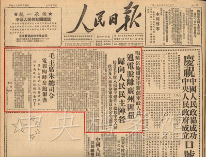 1948年8月,西北軍政長官公署副長官陶峙岳兼任新疆警備總司令,1949年1月,包爾漢擔任新疆省政府主席兼保安司令。1949年4月,與中國共產(chǎn)黨有聯(lián)系的國民黨和談代表屈武回新疆,策劃和平解放。中共中央派鄧力群到新疆進行爭取和平解放的工作。9月25日,陶峙岳向毛澤東、朱德、彭德懷及中國人民革命軍事委員會發(fā)出起義通電:自即日起,與廣州政府斷絕關(guān)系,竭誠接受毛澤東之八項和平聲明與國內(nèi)和平協(xié)定,全軍駐守原防,維持地方秩序,聽候人民革命軍事委員會及人民解放軍總部之命令。26日,包爾漢也發(fā)出起義通電:將省政府改組成新疆省臨時人民政府,暫時維持全省政務(wù),聽候中央人民政府的命令。9月底,起義部隊改編為中國人民解放軍第二十二兵團,新疆和平解放。