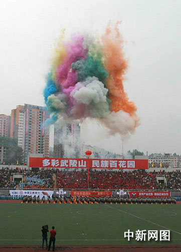 中新網(wǎng)黔江10月18日電 (杜遠(yuǎn)) 第二屆中國(guó)武陵山民族文化節(jié)18日在重慶市黔江區(qū)正式開幕。