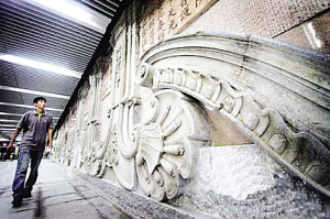 近期關(guān)于藝術(shù)品進(jìn)地鐵的話題是隨著北京地鐵4號(hào)線的開(kāi)通而逐漸熱起來(lái)的。于9月底通車(chē)的北京地鐵4號(hào)線在8個(gè)重點(diǎn)站設(shè)置了裝飾性藝術(shù)壁畫(huà),其“記憶歷史文脈,彰顯城市文化,突出地域標(biāo)志”的設(shè)計(jì)理念使這些壁畫(huà)充滿了人文氣息和歷史厚重感。如國(guó)家圖書(shū)館站的主題為“書(shū)的海洋”,圓明園站的西洋樓殘柱浮雕,西單站的《老字號(hào)》浮雕等?梢钥闯龅罔F經(jīng)營(yíng)方對(duì)引入公共藝術(shù)的重視,以及通過(guò)藝術(shù)品來(lái)裝飾地鐵空間,使乘客得到美的熏陶,甚至提高民眾的藝術(shù)欣賞水平的愿望。