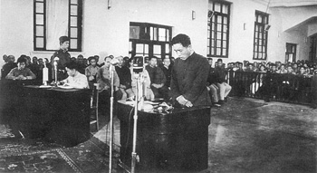 為了這次出庭,王克峰頭一次穿上整潔的灰色毛料中山裝、黑皮鞋,拎的是米黃色皮包,在法庭上接受公訴人、審判長(zhǎng)、辯護(hù)人、被告人的質(zhì)疑詢(xún)問(wèn),以鑒定證據(jù)支持公訴。整個(gè)過(guò)程,都用電影膠片給記錄了下來(lái)。被告人住岡義一當(dāng)庭認(rèn)罪,請(qǐng)求審判長(zhǎng)“給我最嚴(yán)重處分”。