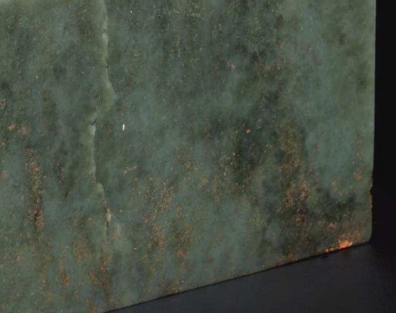 李教授現(xiàn)為江蘇省書畫鑒定小組主任委員,他潛心研究篆刻三十多年,他向記者介紹:清代乾隆二十五年后時玉器制作進入玉器史上的鼎盛期,而在玉器質地的選料上,都是由新疆大吏搜羅開采頂級的上品而充貢內廷。而且皇帝玉璽成品都很規(guī)整,幾乎做到玉璽無筋、無柳、無瑕,用于制作玉璽都為最好的肉質,開料與玉璽制成的比率很低,原料的浪費極大,為的就是選料的純靜,美玉良工以確保玉璽的精美度,而此次拍賣的乾隆“八徵耄念之寶”青玉璽,目鑒便知玉質上有大片的柳絮紋。(圖一)玉質當屬普通青玉料,皇家玉璽是不會選這種檔次的玉料制作的!