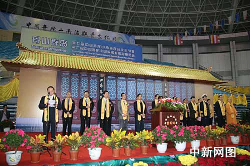 中新網(wǎng)舟山11月15日電(記者 江耘 袁爽 實(shí)習(xí)生 沈蘭)11月15日上午,第七屆中國(guó)普陀山南海觀音文化節(jié)在浙江舟山普陀山上開幕。本屆文化節(jié)吸引了來自日本、泰國(guó)、菲律賓、希臘等國(guó)家和地區(qū)的人士前來參加。