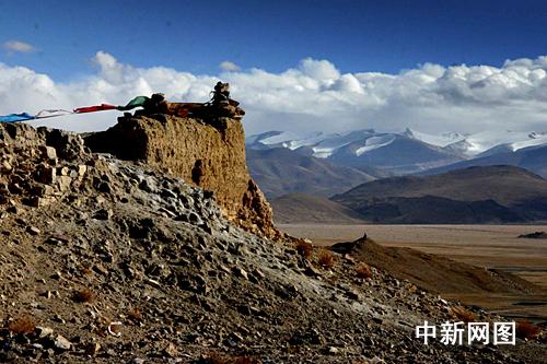 崗嘎鎮(zhèn)黨委書記達瓦次仁告訴我們,這座山名為“崗嘎山”。在山頂,碎石遍布,但還能清晰地看出關帝廟墻腳的走向。山頭懸崖處,是藏民擺放的瑪尼堆,還有迎風飛舞的五彩經(jīng)幡。放眼望去,幾十公里外,就是綿延不斷的珠穆朗瑪群峰。
