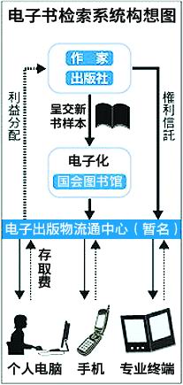 網(wǎng)絡(luò)收費圖書檢索的構(gòu)想源自長尾真館長發(fā)表于2008年4月的一項個人設(shè)想,該設(shè)想最大的亮點便是設(shè)立非盈利的第三方機構(gòu)“電子出版物流通中心”,全面負(fù)責(zé)與作家的作品網(wǎng)絡(luò)發(fā)布有關(guān)的著作權(quán)問題。國會圖書館將藏書的電子數(shù)據(jù)無償提供給“電子出版物流通中心”,由該中心以收費方式發(fā)送給使用者,隨后將征收到的電子書存取費分配給著作權(quán)人。據(jù)悉,該中心的功能非常近似于眼下“日本音樂著作權(quán)協(xié)會”受詞曲作者委托,向電視臺等征收著作權(quán)使用費。