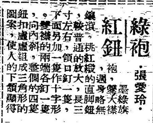 不久前出版的《舊聞新知張愛(ài)玲》一書(shū),收錄了張愛(ài)玲散文《炎櫻衣譜·前言》,這篇談衣服的文章是張愛(ài)玲為其好友炎櫻新開(kāi)的服裝店寫(xiě)的“廣告軟文”,文章與張愛(ài)玲名作《更衣記》多有相似,堪為姐妹篇。