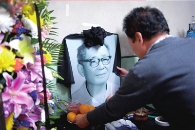 昨天在靈堂前,王秀榮用父親生前最喜歡的口琴給老人吹奏《送情郎》。悠揚(yáng)的口琴聲響起時(shí),老人的子女頓時(shí)哭聲一片,“這節(jié)奏太熟悉了,我覺得我爸沒走”,大女兒王秀英說。(記者于杰)