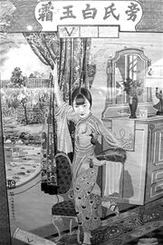 轉(zhuǎn)眼來(lái)到廣告畫月份牌展位,南洋兄弟香煙、旁氏白玉霜化妝品(圖二)以及蘭閨試鞋圖等廣告,從一個(gè)側(cè)面反映了辛亥革命帶給中國(guó)的社會(huì)變遷,極具觀賞性,畫面中女性的時(shí)尚與靚麗讓章開(kāi)沅不禁贊嘆:民國(guó)時(shí)期的女性很會(huì)打扮嘛!