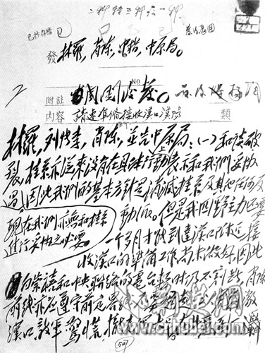 4月28日,毛澤東再次致電林彪、羅榮桓等人,電文中甚至小到一座鐵橋——灄口鐵橋(現(xiàn)武漢市江岸區(qū)和黃陂區(qū)交界一帶)要不要搶占,都進(jìn)行了細(xì)致的部署。“以上電報文稿均為毛澤東親自手書,從中可見毛澤東高屋建瓴的戰(zhàn)略思維,決勝千里的軍事才能。”陳芳國說。 (記者 高家龍 通訊員 劉臘生)