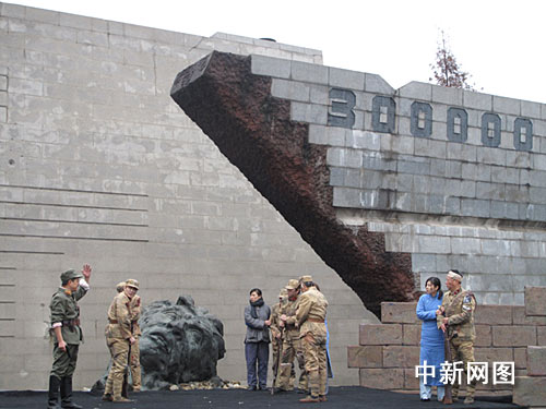 為紀念“南京大屠殺”事件爆發(fā)七十二周年,悼念南京三十萬同胞遇難七十二周年,為了讓廣大人民群眾尤其是青少年勿忘國恥,珍惜和平,為反映發(fā)生在南京的重大歷史事件,今天中午,南京市話劇團在江東門“南京大屠殺遇難同胞紀念館”現(xiàn)場演出舞臺劇《淪陷》。