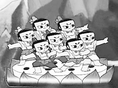 的確,在大多數(shù)人看來,整部《葫蘆兄弟》完全是一個集體作品。即使胡進慶身兼多職參與了《葫蘆兄弟》的導演、編劇和形象設計工作,觀眾也很難發(fā)現(xiàn)這一點。在片頭的字幕中,他用了三個不同的名字,胡進慶、進慶,還有他的筆名“墨犢”,“不然都是我一個人的名字,多難看。”