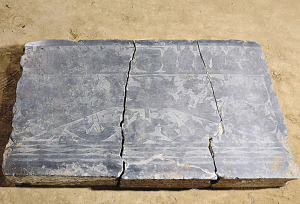 墓地被認(rèn)定為曹操墓,與盜墓賊偷盜的兩件文物有關(guān)。“曹操墓”所在地,原為一窯場(chǎng)取土點(diǎn),被挖掘五六米深后遭到廢棄,有村民在此種上了莊稼。2005年底,一村民在此澆地時(shí),發(fā)現(xiàn)有一處地方水一直向下流,經(jīng)查看發(fā)現(xiàn)那里有一個(gè)洞,推測(cè)下面可能是古墓;過(guò)春節(jié)時(shí),有人發(fā)現(xiàn)該墓已經(jīng)被盜,陸續(xù)被盜得很?chē)?yán)重。當(dāng)?shù)嘏沙鏊群笞チ?批盜墓賊,38人。2008年,安陽(yáng)縣安豐鄉(xiāng)派出所從盜墓賊手中繳獲三塊墓內(nèi)畫(huà)像石,畫(huà)像石上部有“主簿車(chē)”、“咸陽(yáng)令”、“紀(jì)梁”、“侍郎”等字樣,其下部為水陸攻戰(zhàn)圖場(chǎng)面。從畫(huà)像石的銘文來(lái)看,墓葬規(guī)格相當(dāng)高,應(yīng)該為漢魏時(shí)期的高級(jí)貴族墓葬。在這些文物中,最珍貴的莫過(guò)于石枕與刻銘石牌了。石枕上刻有“魏武王御用”字樣,刻銘石牌上也有“魏武王”字樣。刻有“魏武王”的石牌再次撥開(kāi)曹操墓的迷霧。因?yàn)檫@和曹操的身份相符合:曹操生前為王,他兒子曹丕做了皇帝以后,他才被追封為魏武帝;這兩處的“魏武王”完全與他死時(shí)的身份相符。