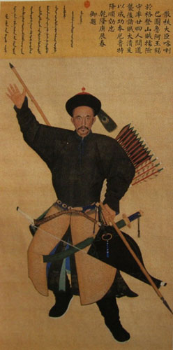 畫作的左上角注明滿文和漢文題贊:“頭等侍衛(wèi)固勇巴圖魯伊薩穆,援兵雖來,畫塹相望,孰騎而呼,為告無恙,維巴圖魯,偕往趣師,其沖賊隊,如分水犀”——勇士的英名、事跡也和勇士的肖像一起懸掛朝堂,詔告天下,永存美譽(yù)了。