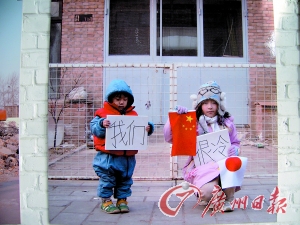 在北京正陽藝術(shù)區(qū)內(nèi)進行的這次“暖冬”計劃的首展可謂傳統(tǒng)與另類并行。藝術(shù)家們通過各種各樣的表現(xiàn)手法來表達自己對于拆遷的態(tài)度。走進滿是磚石瓦礫的藝術(shù)區(qū),整個藝術(shù)區(qū)本身似乎就是一件藝術(shù)品,大門內(nèi)是一大片墻體倒塌所形成的廢墟,非常有視覺沖擊力,走進藝術(shù)區(qū)內(nèi),在房屋的墻壁上,到處是藝術(shù)家們粉刷的紅紙黑字的大標語,要求開發(fā)商“還水還電”,來自798藝術(shù)區(qū)的藝術(shù)家黃銳在寒風中專心致志地在藝術(shù)區(qū)內(nèi)的地板上勾畫自己的作品道具——一個畫在磚頭地板上的陰陽八卦圖形。他還撐著一把黑白兩色的傘,在自己勾畫的陰陽八卦里跳來跳去。
