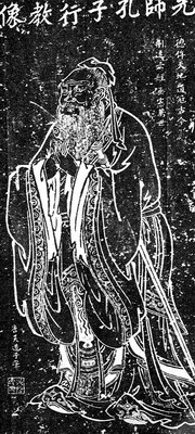 人們通常看到的“孔子行教像”最早出于唐朝著名的宮廷畫家吳道子,但他似乎并沒有認(rèn)真查考資料。另一方面,受《孔叢子》偽書說的影響,以后的孔子畫像便以訛傳訛,使孔子畫像、雕像都濃眉長(zhǎng)髯。實(shí)際上,前人也指出孔子沒有須眉,如明陳繼儒《群碎錄》、清杭世駿《訂訛類編》就說:孔子無須,今像多須,誤。