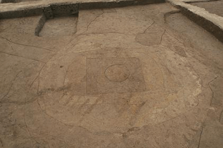 2、發(fā)現(xiàn)夯土祭壇,在山東地區(qū)尚屬首次發(fā)現(xiàn),國內(nèi)罕見。祭壇位于城內(nèi)南部正中偏西部位,距南墻21.5米。南北殘長34.5米,東西殘寬19米,殘存高度0.7—0.8米。中心為直徑5.5—6米的圓臺形,向外依次為不同土色的方形、長方形及圓形、橢圓形相套的夯筑臺基。外圍有多層厚5—12厘米不等的水平狀夯土堆積,間有白色沙土或灰燼薄層。祭壇邊緣多被晚期遺跡破壞,中心部位到春秋戰(zhàn)國時期仍然保存完好,其南北干道也從祭壇西側(cè)繞行,這表明,在戰(zhàn)國時期人們對祭壇仍然保持著某種程度的崇拜。