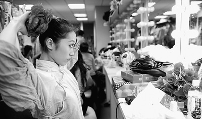 序幕里,周巖扮演的“和諧少女”在舞臺(tái)上空飛過(guò),造型驚艷,一下子就調(diào)動(dòng)起了觀眾的情緒。但在第一次吊威亞培訓(xùn)時(shí),她哭了。“為了安全,腰上要系得特別緊。”在天上吊著的時(shí)候沒(méi)有什么感覺(jué),結(jié)果腳一著地,“就疼哭了”。
