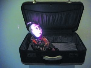 立于《玩偶》前有一刻驚悚。被拋擲于衣箱內(nèi)的小人兒身子是實(shí)在的布偶,頭部卻是虛幻的投影,他圓睜的大眼無(wú)辜地注視著頭頂上方,那個(gè)隨時(shí)將要闔上的衣箱蓋既壓迫他的頭顱,也壓迫他那嬰孩的小身軀里裹著的小小的心臟。他望見(jiàn)了什么?圣馬可看見(jiàn)耶穌復(fù)活了嗎?人類等待救贖的命運(yùn)竟然就被歸置于這個(gè)如此狹小的空間。另一刻,《雙頭》的猙獰堪叫人絕望。相互注視的兩張面孔應(yīng)是一男一女,慘白的面頰、深陷的眼眶、漫漶的眉發(fā)均噴射出青灰冷峻的光,他們始終的懷疑、猜忌、挑釁繼而惡毒的攻訐,昭示了兩性間抑或人與其同類間因仇恨而隔絕的森嚴(yán)壁壘。